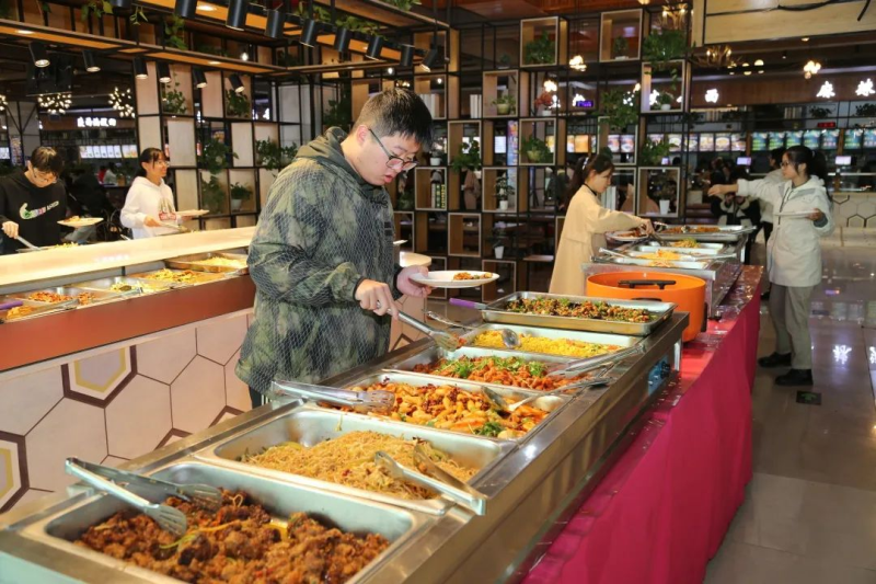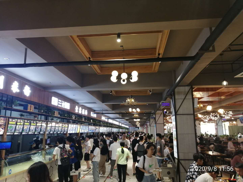 嘉園餐廳三樓位于河南科技大學(xué)開元校區(qū),南鄰關(guān)林路,北鄰開元大道,東臨學(xué)府街,西接周山大道。東南緊鄰洛陽新區(qū)三院,東北緊靠體育公園,交通便利,周邊的服務(wù)設(shè)施配套齊全。校區(qū)歷史悠久,校內(nèi)綠樹成行,環(huán)境優(yōu)美,餐廳內(nèi)部裝修簡單時尚,空調(diào)暖氣等基礎(chǔ)設(shè)施配備完善,功能區(qū)就餐區(qū)布局合理,食堂面積3800m2 ,整層餐廳功能性布局合理而豐富,東南角為餐廳自選餐區(qū)域,西北角為雅座休閑區(qū)域,中間為大廳就餐區(qū),南面電梯位置布置有高凳高椅的茶吧休閑區(qū),西側(cè)還有自動升降電梯。餐廳內(nèi)部布置有多彩燈光,各個功能區(qū)還布置有書架和放置綠植的雅格 ,環(huán)境優(yōu)雅而舒適,共設(shè)置窗口數(shù)量35個,餐桌200余張,分別經(jīng)營漢堡、麻辣香鍋、陶香雞、無名包子、麻辣燙、蓋澆飯等眾多特色小吃,備受學(xué)生喜愛。